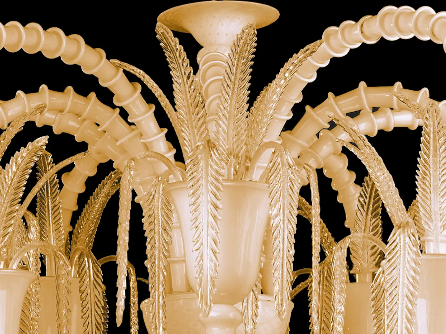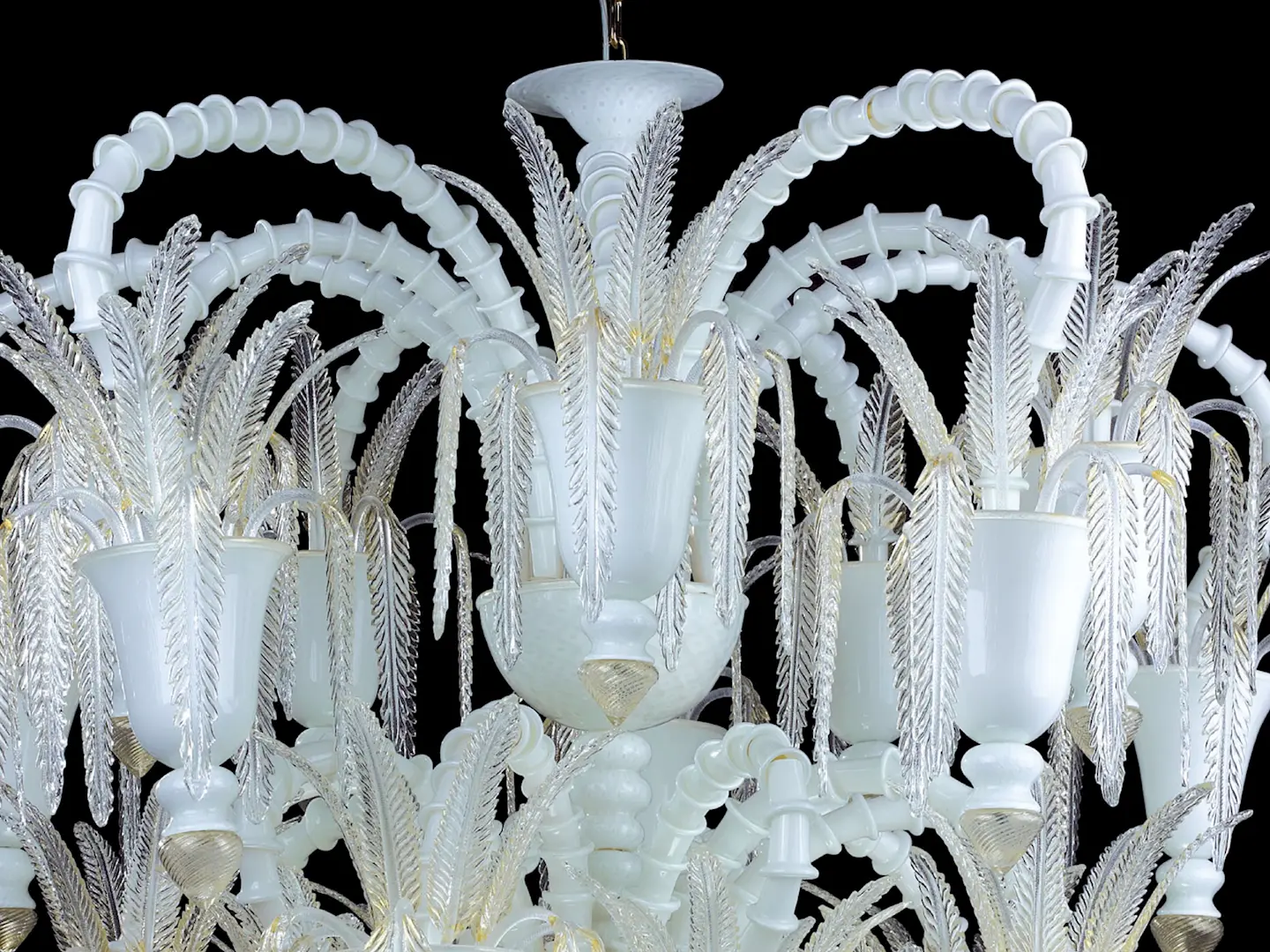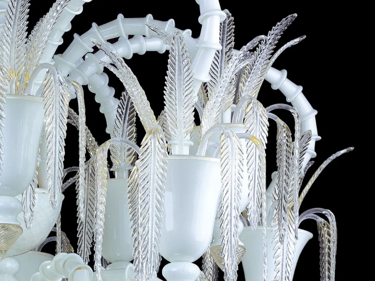 Il lampadario Calle del Vin è un'imponente e raffinata creazione della collezione Luxury, realizzata interamente a mano dai Maestri vetrai veneziani utilizzando il prestigioso Vetro di Murano. Con la sua base bianco latte e le rifiniture in oro 24 carati, questo lampadario esprime classe ed eleganza, adatto a impreziosire qualsiasi ambiente.